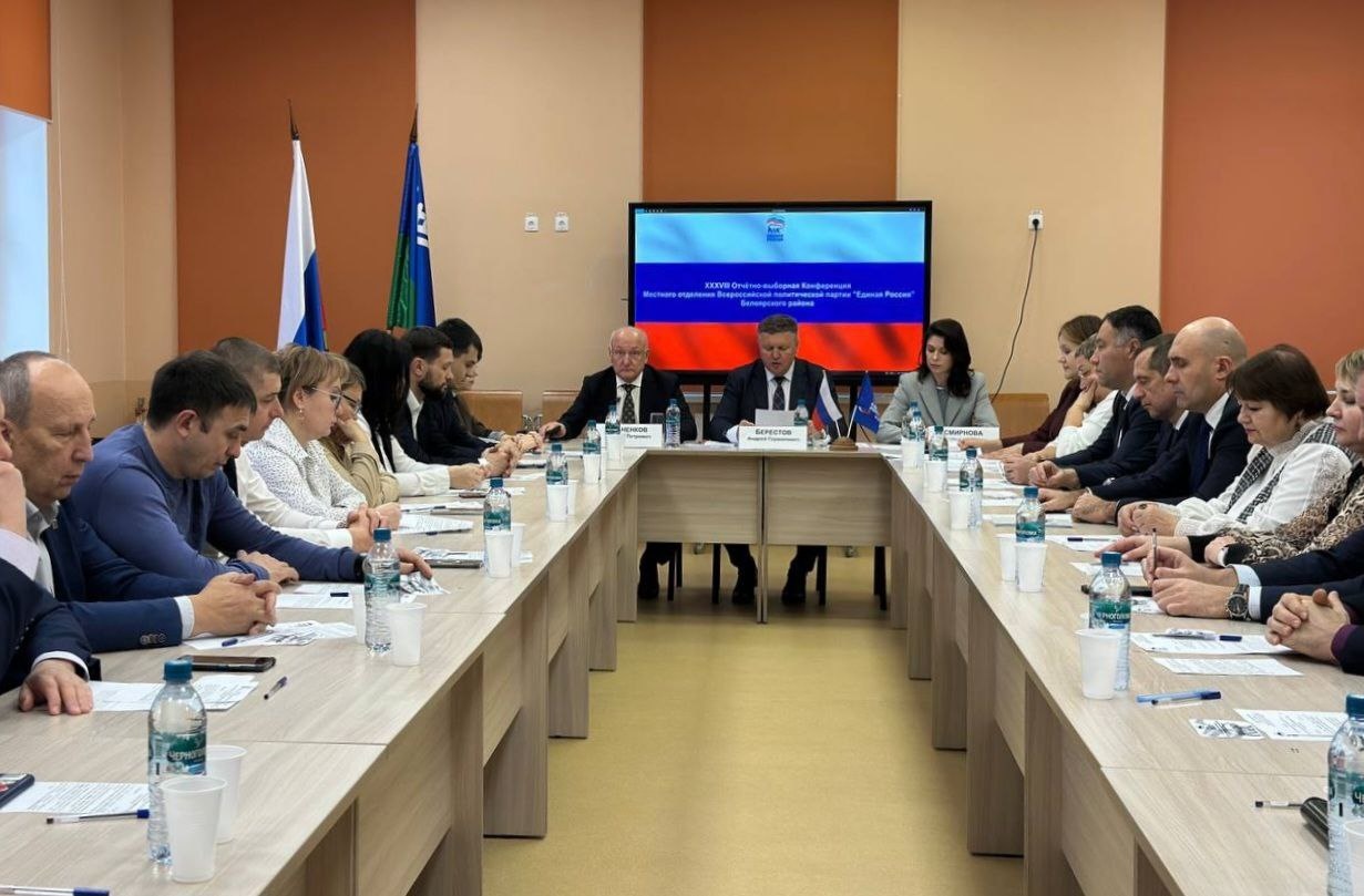 Сегодня в Белоярском районе состоялась XXXVIII Отчетно-выборная конференция Местного отделения Всероссийской политической партии "Единая Россия". На повестке дня стояли важные вопросы: подведение итогов работы Местного отделения за отчетный период, ежегодная ротация членов местного политического совета и определение задач на будущий год.Традиционно Конференцию открыл секретарь Местного отделения Андрей Берестов, который передал слово почетному гостю - Сергею Маненкову, главе Белоярского района. Сергей Петрович отметил значимость участия Партии в жизни района и подчеркнул необходимость дальнейшего объединения усилий для достижения общих целей.