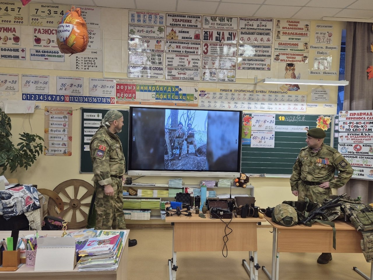 В рамках мероприятий по патриотическому воспитанию младших школьников партийцы-ветераны специальной военной операции встретились с второклассниками четвертой городской школы.Депутат-единоросс Думы Белоярского района Дмитрий Апкаликов вместе с членом ассоциации ветеранов СВО Алексеем Дубининым рассказали детям о своём боевом пути, продемонстрировали фотографии и видеофрагменты с мест боевых действий. Гости показали обмундирование и ответили на вопросы юных белоярцев. Ученики смогли примерить бронежилеты, что вызвало у них неподдельный трепет и укрепило восхищение не только силой духа, но и физической выносливостью военнослужащих.