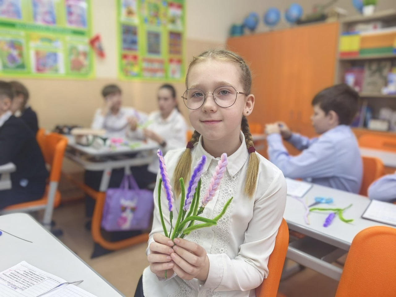 В рамках реализации партийного проекта «Крепкая семья» 25 ноября в первой городской школе Белоярского района состоялся творческий мастер-класс под названием «Цветы для мамы». Ученики 4А класса под руководством своего педагога Верой Бутаковой и волонтеров Штаба общественной поддержки освоили искусство создания цветов из синельной проволоки.На занятии ребята не только научились мастерить оригинальные поделки, но и презентовали волонтеру трогательную песню, которую исполнят для своих мам как подарок от класса. Веточки лаванды, которые сделали ребята, они с радостью подарят мамам 30 ноября, в День матери.