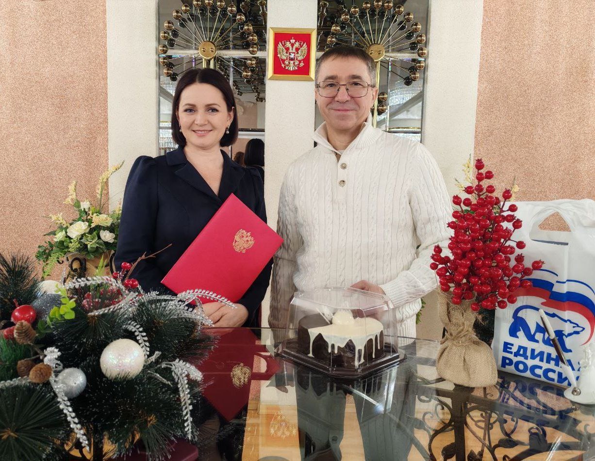 Юрий Громовой, член депутатской фракции «Единая Россия» в Думе Белоярского района, посетил Белоярский ЗАГС, поздравил сотрудниц с их профессиональным праздником, вручил подарки и угощения.