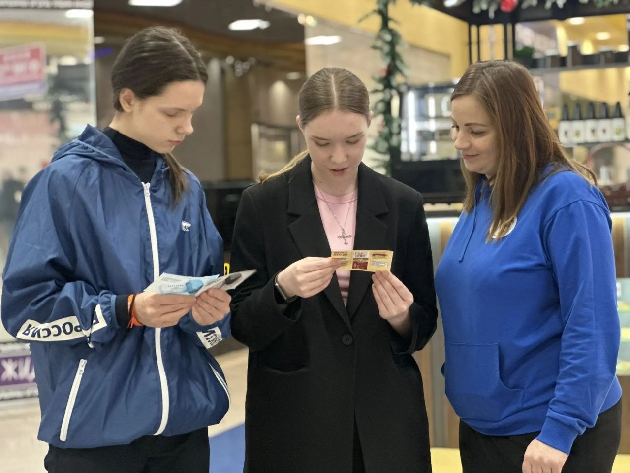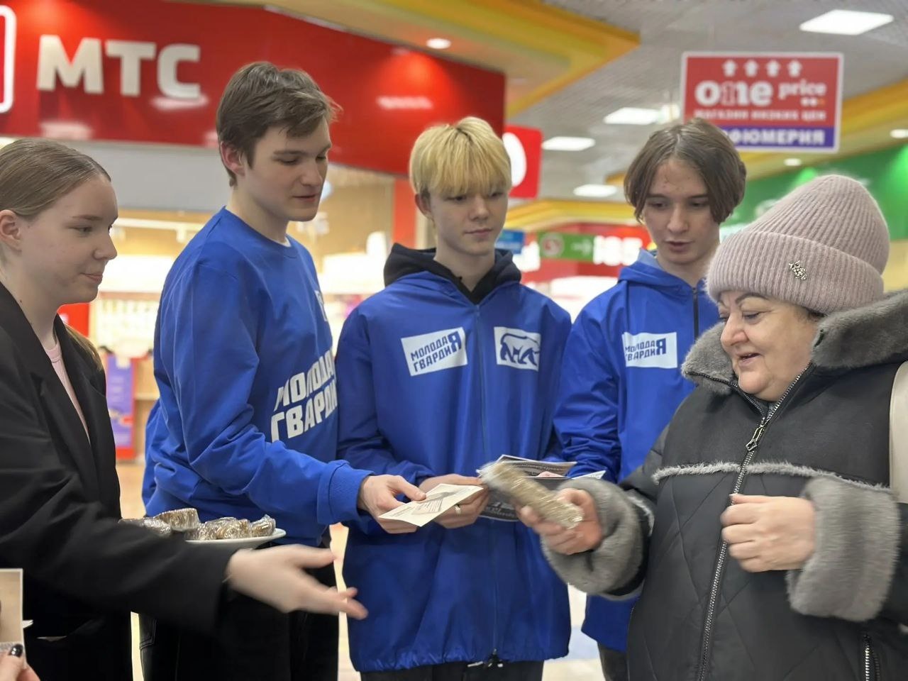 Затем активисты Движения первых, Молодой гвардии и волонтеры Победы отправились в ТЦ "Оазис-Плаза" где рассказали белоярцам о символе города-героя - блокадной ленточке, карточках на питание, а также раздавали листовки и буклеты, дарили землякам кусочек черного хлеба - те самые 125 граммов на человека в страшные дни блокады.